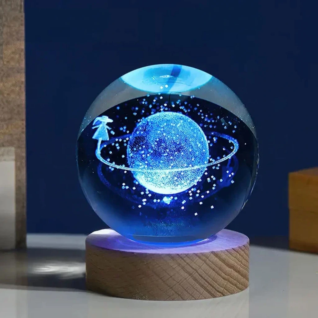 Satürnlü Kız Temalı Işıklı Cam Küresi
