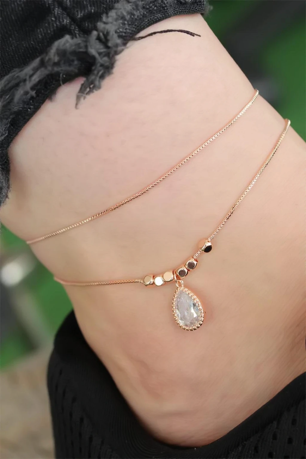 Rose Gold Renk Zirkon Damla Taşlı Halhal - TJ-HH1151-KS