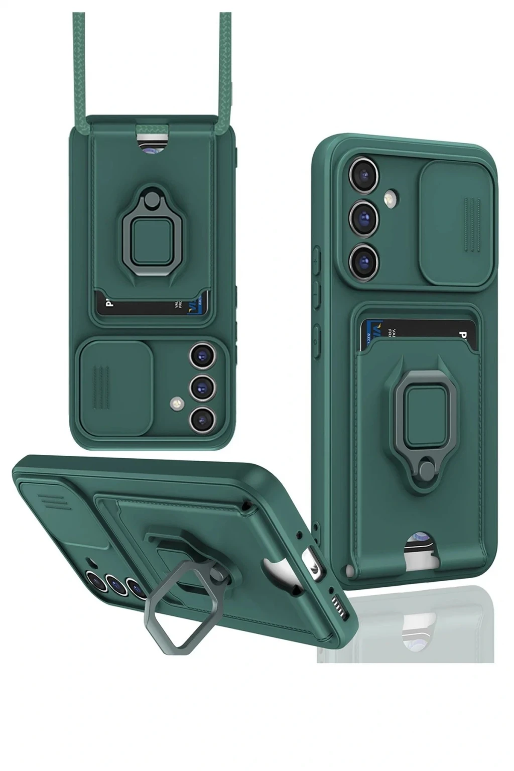 Samsung Galaxy A14 4G Kılıf Zuma Kartvizitli Yüzüklü Silikon - Yeşil