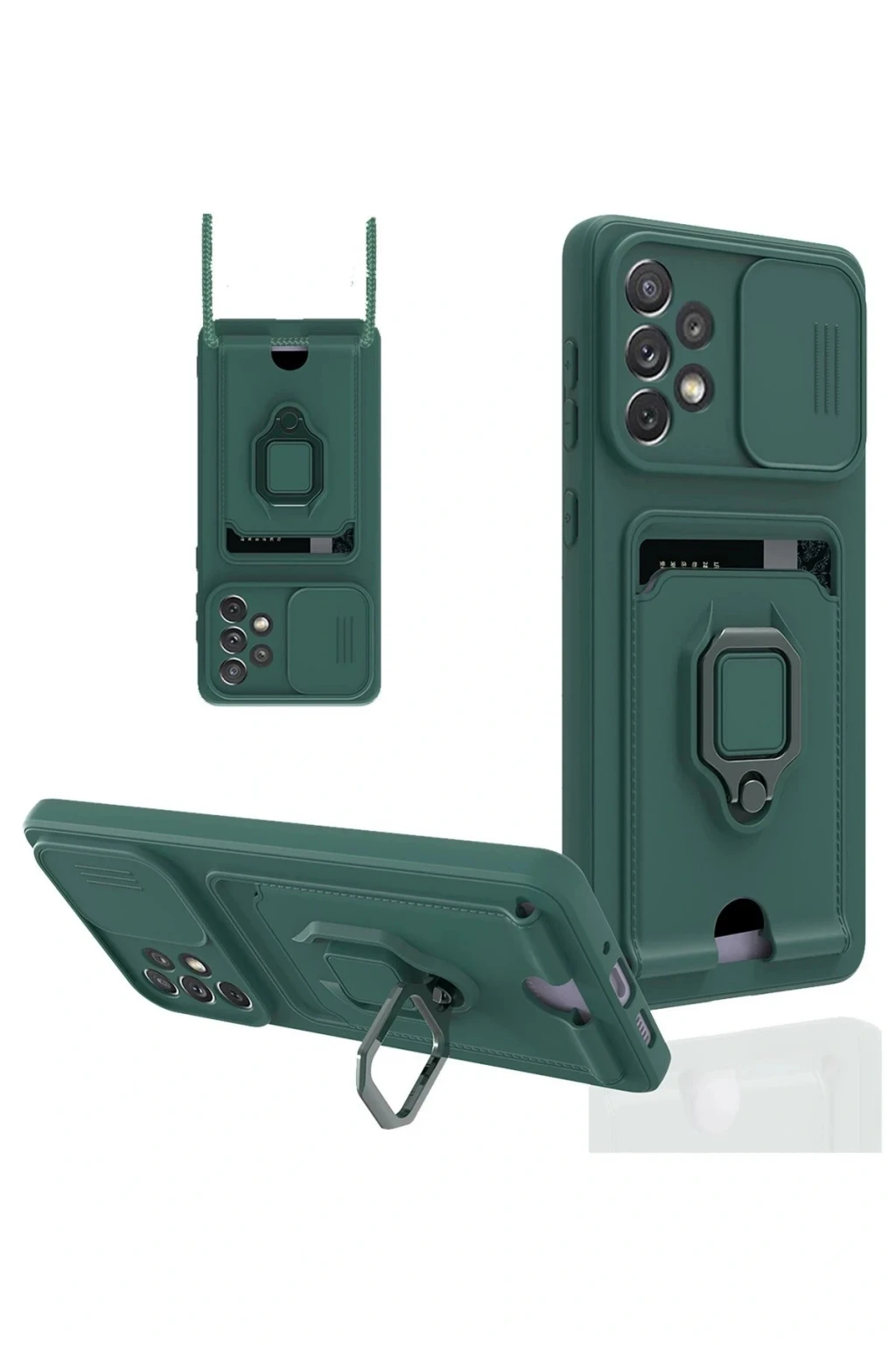 Samsung Galaxy A53 5G Kılıf Zuma Kartvizitli Yüzüklü Silikon - Yeşil