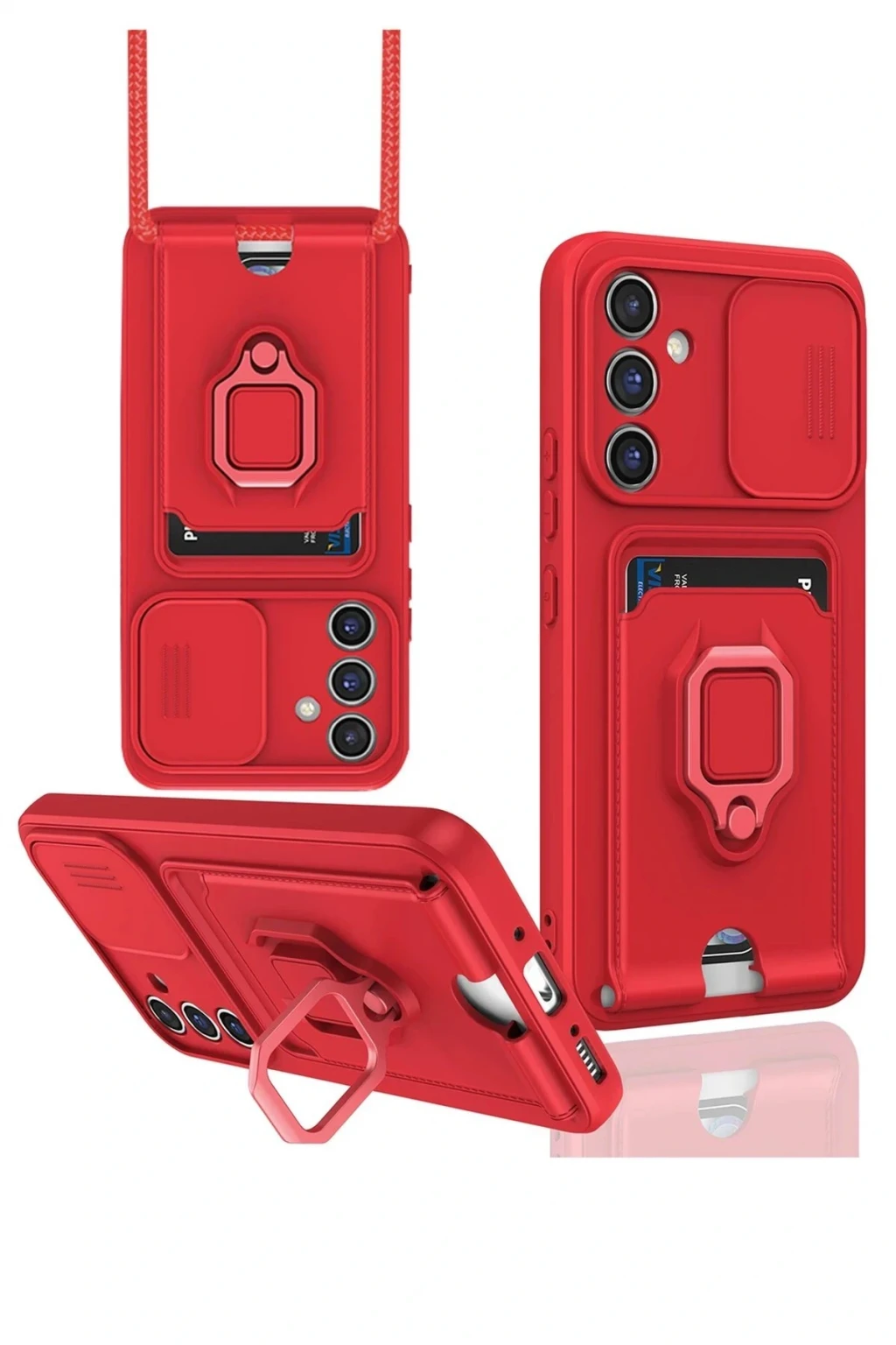 Samsung Galaxy A56 Kılıf Zuma Kartvizitli Yüzüklü Silikon - Kırmızı