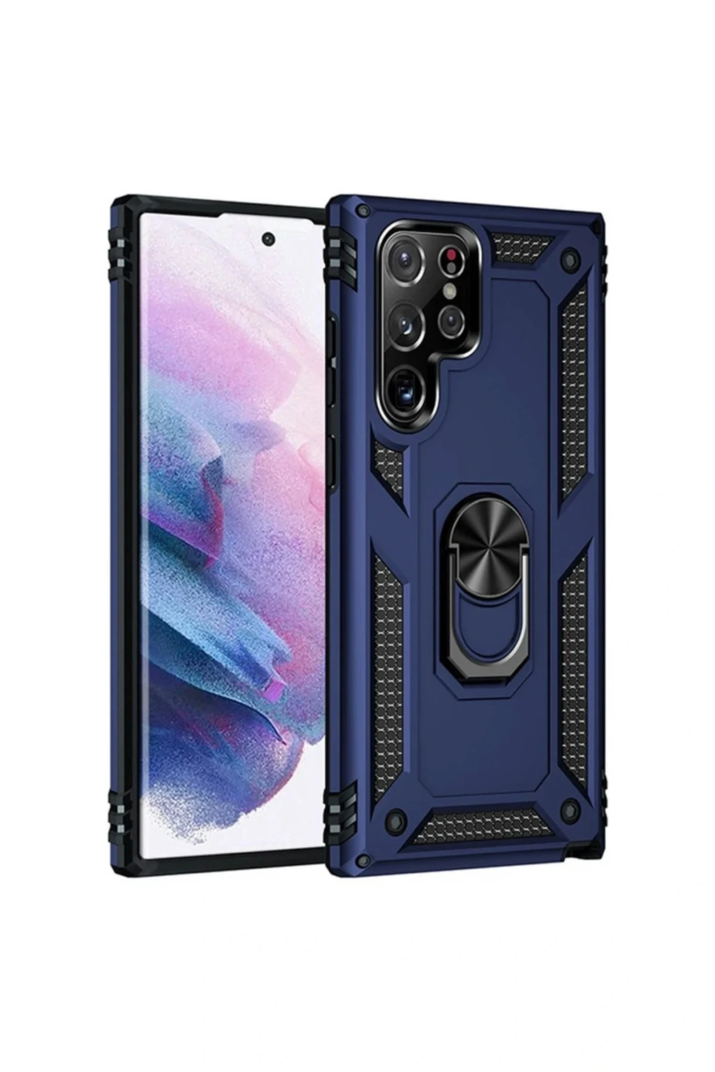 Samsung Galaxy S21 Ultra Kılıf Sofya Yüzüklü Silikon Kapak - Lacivert