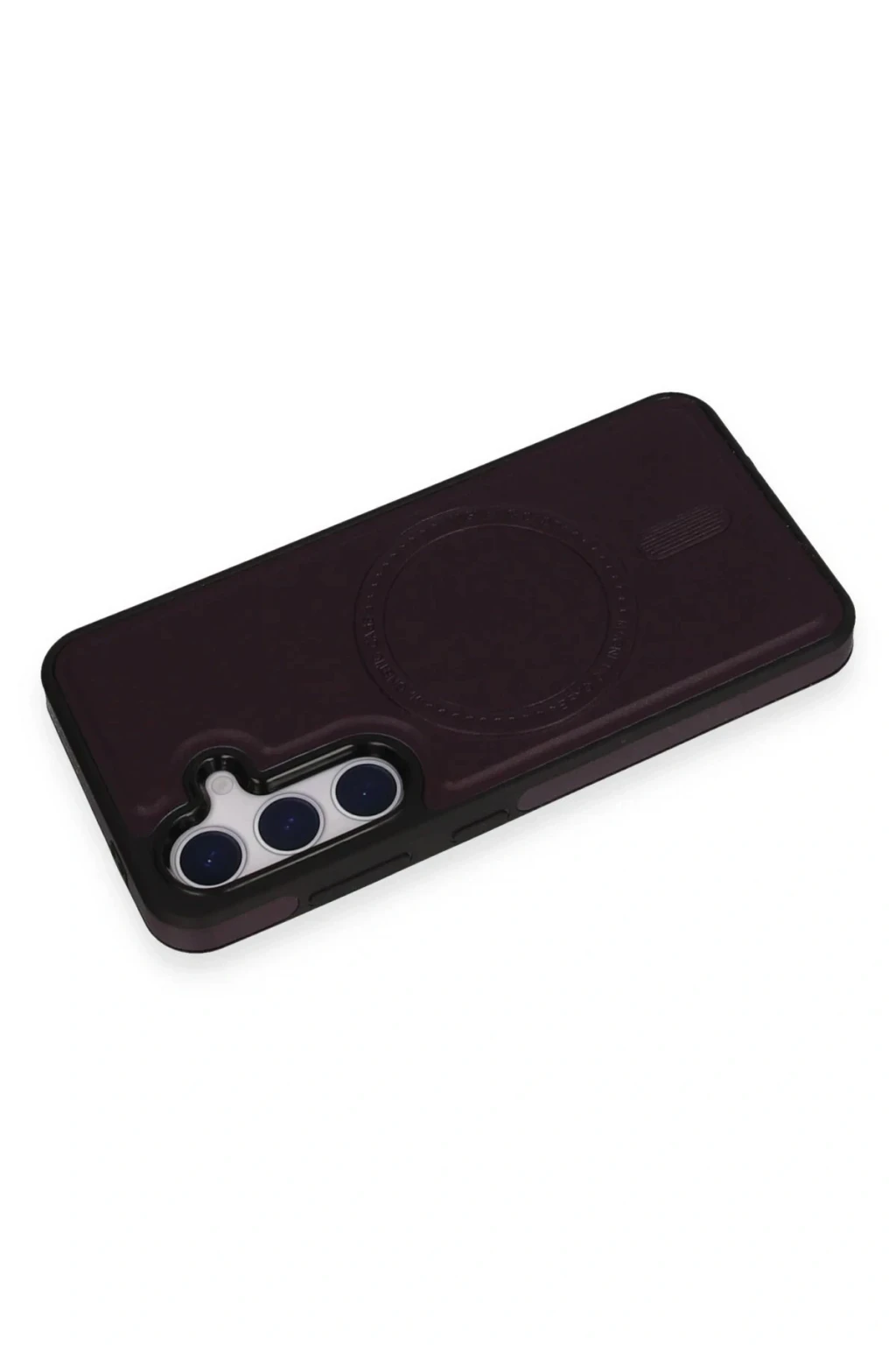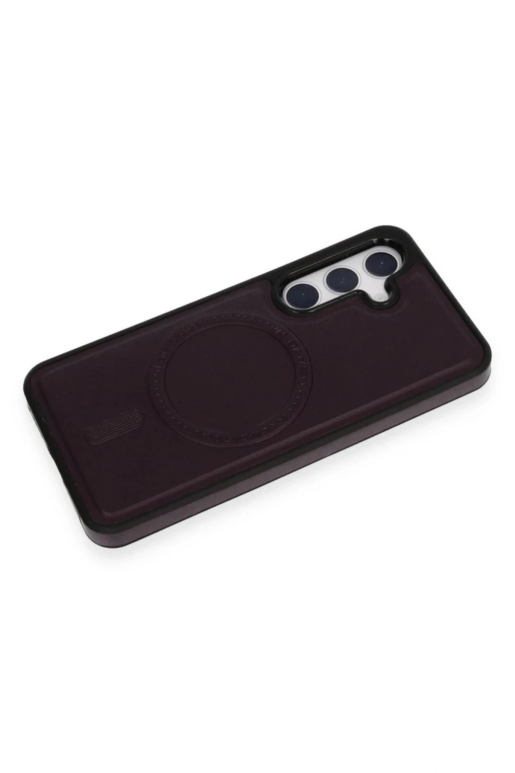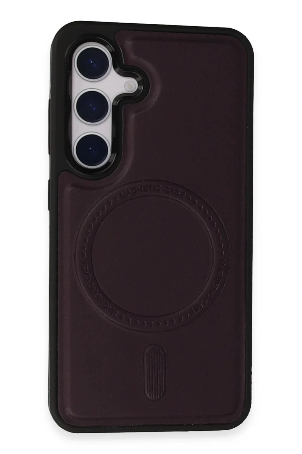 Samsung Galaxy S24 Kılıf Ozzi Magsafe Deri Kapak - Derin Mor