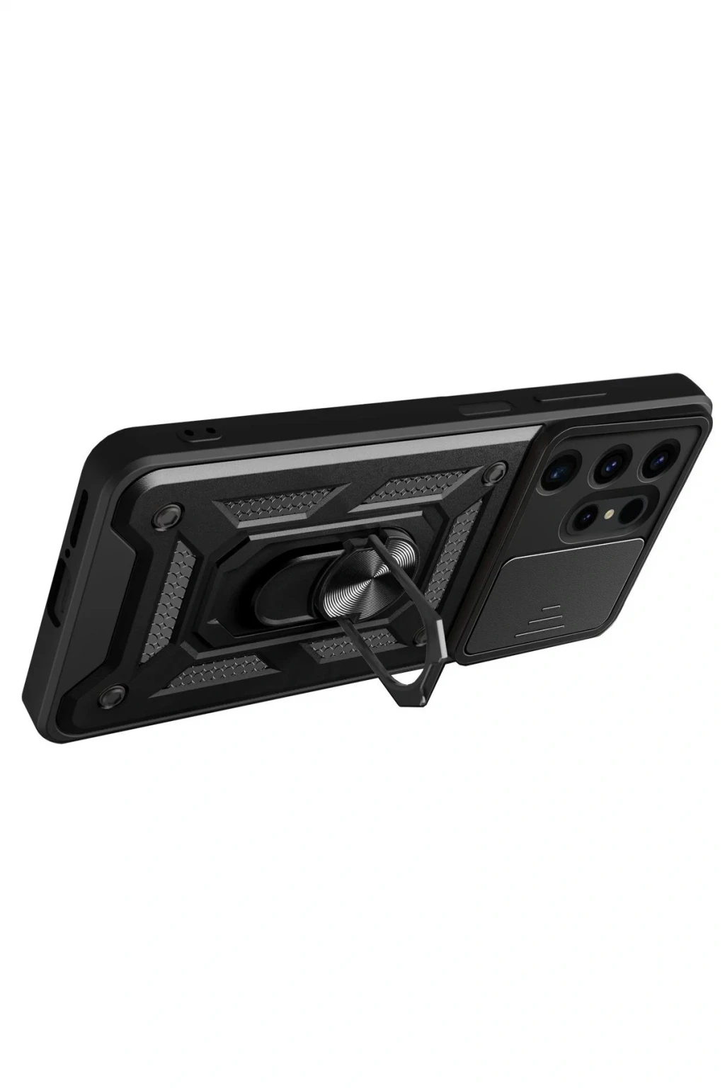 Kılıfın arka kısmında yer alan entegre metal halka hem tutucu hem de stand olarak işlev görür. Eller serbest video izleme, içerik görüntüleme ya da masaüstü kullanımı için idealdir.