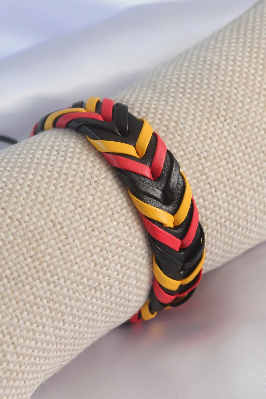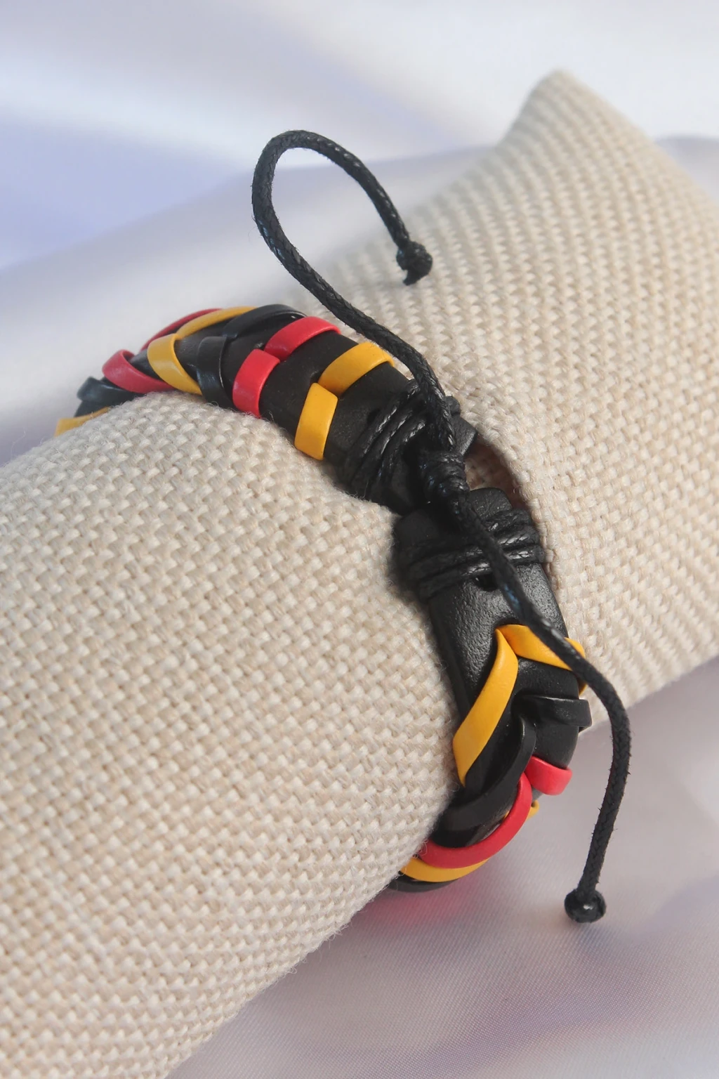 Sarı Kırmızı Siyah Renk Deri İpli Erkek Bileklik - TJ-EB3585