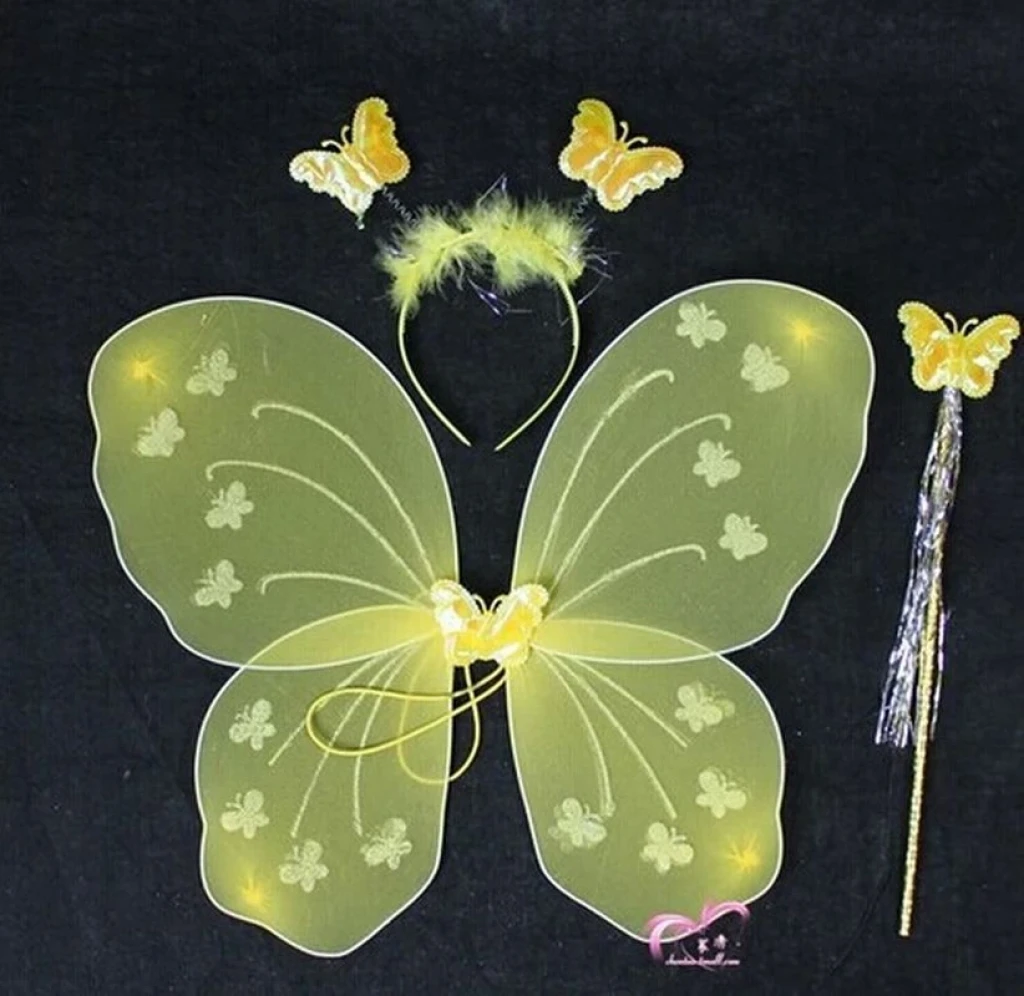 Sarı Renk Kelebek Kanadı Tacı ve Sopası 50x37 cm