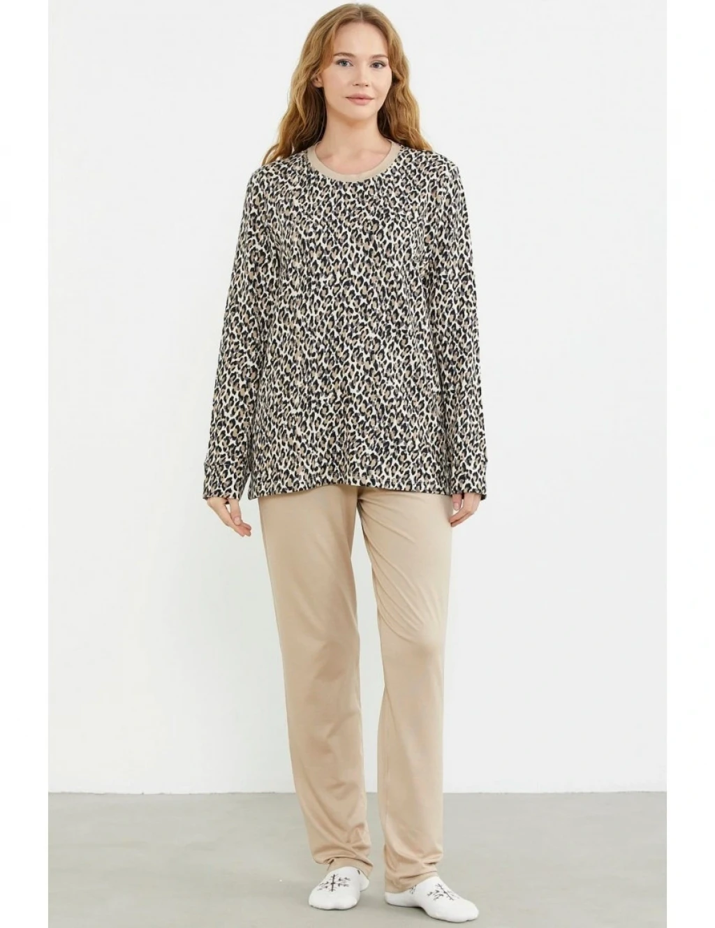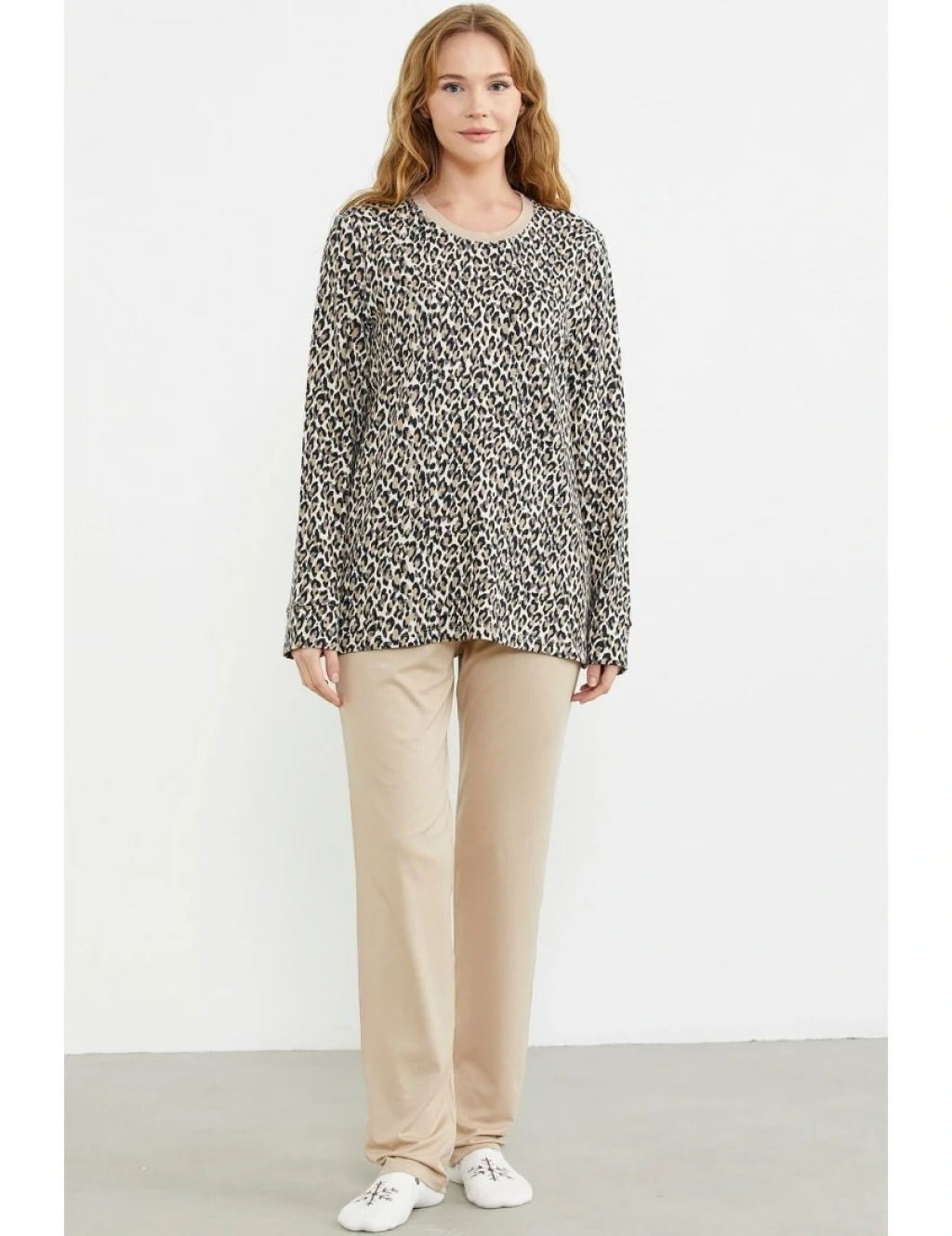 Sementa 76413 Rahat Kalıp Leopar Kombinli Pijama Takım