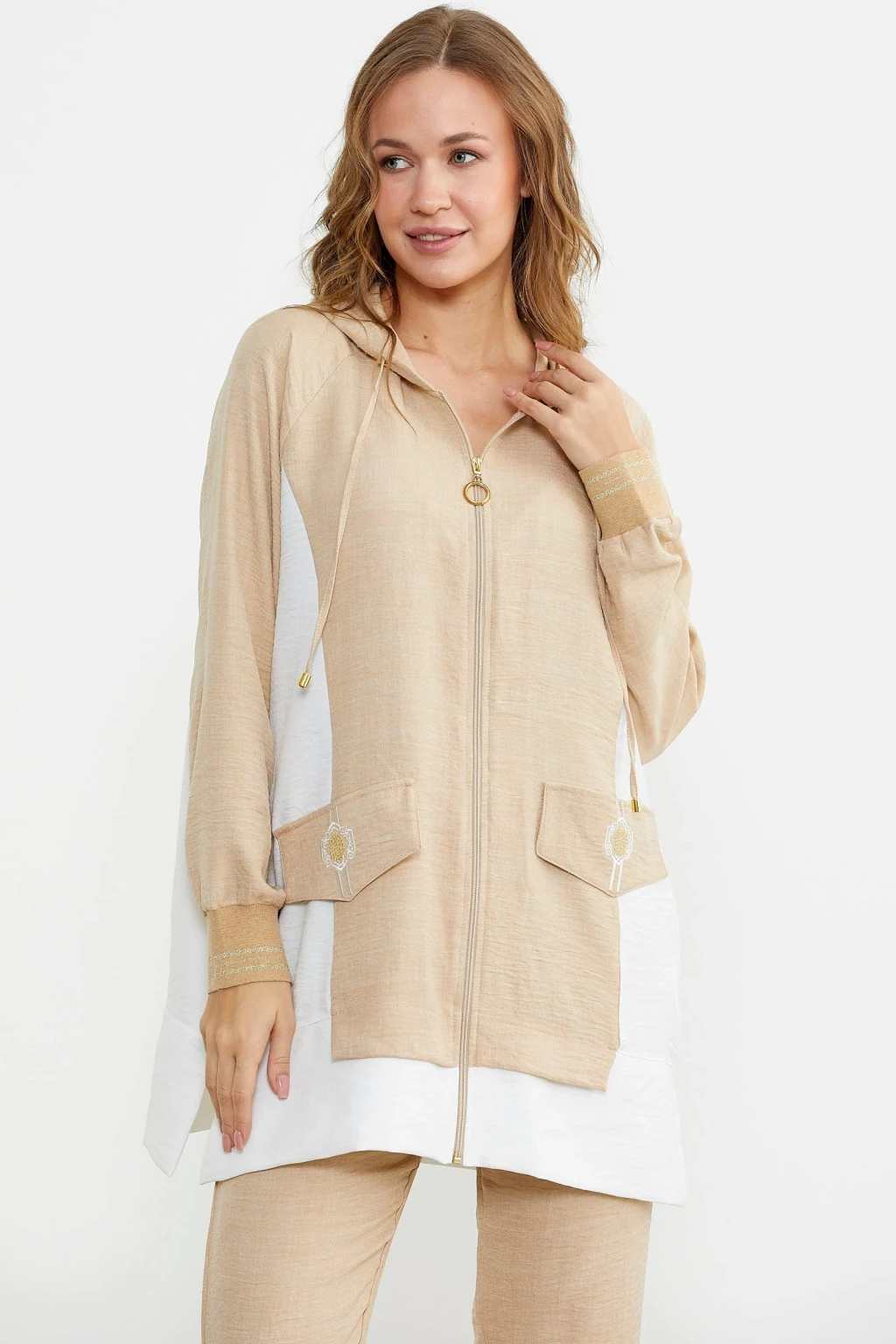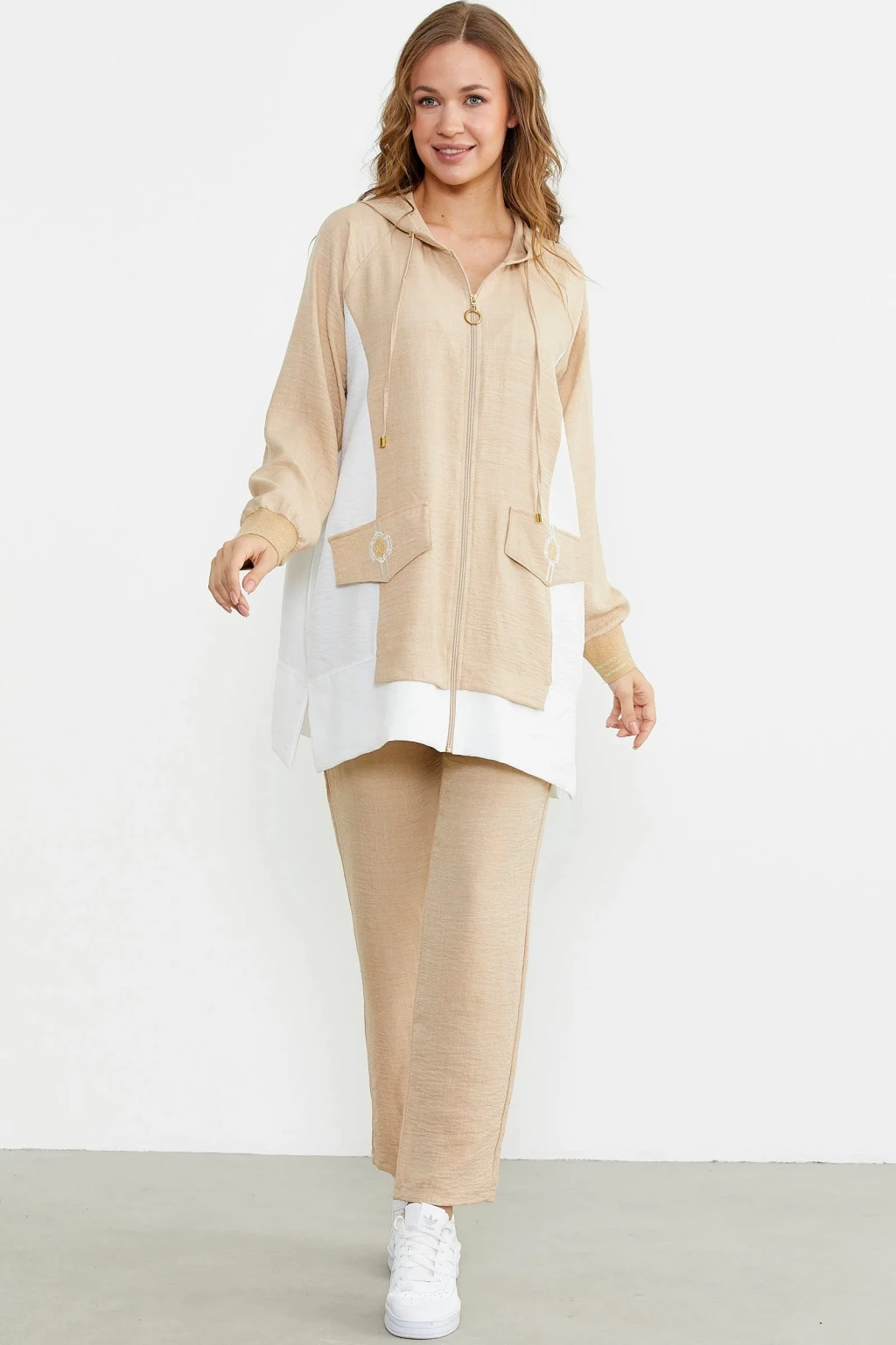 Sementa 76448 Keten Görünümlü Kapüşonlu Tunik Takım