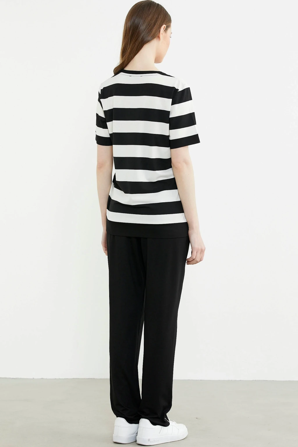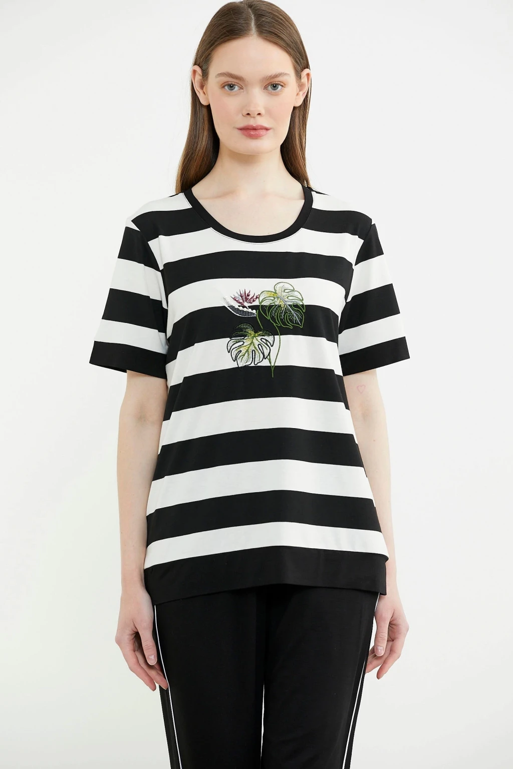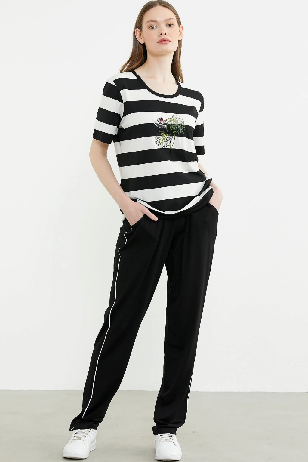 Siyah Likralı Düğmeli Yumuşacık 2li Pijama Takımı