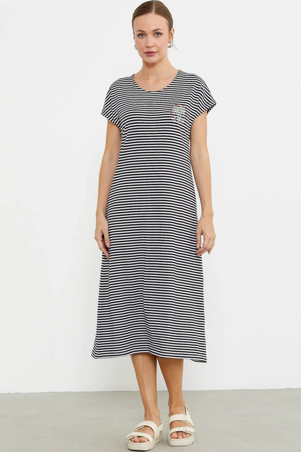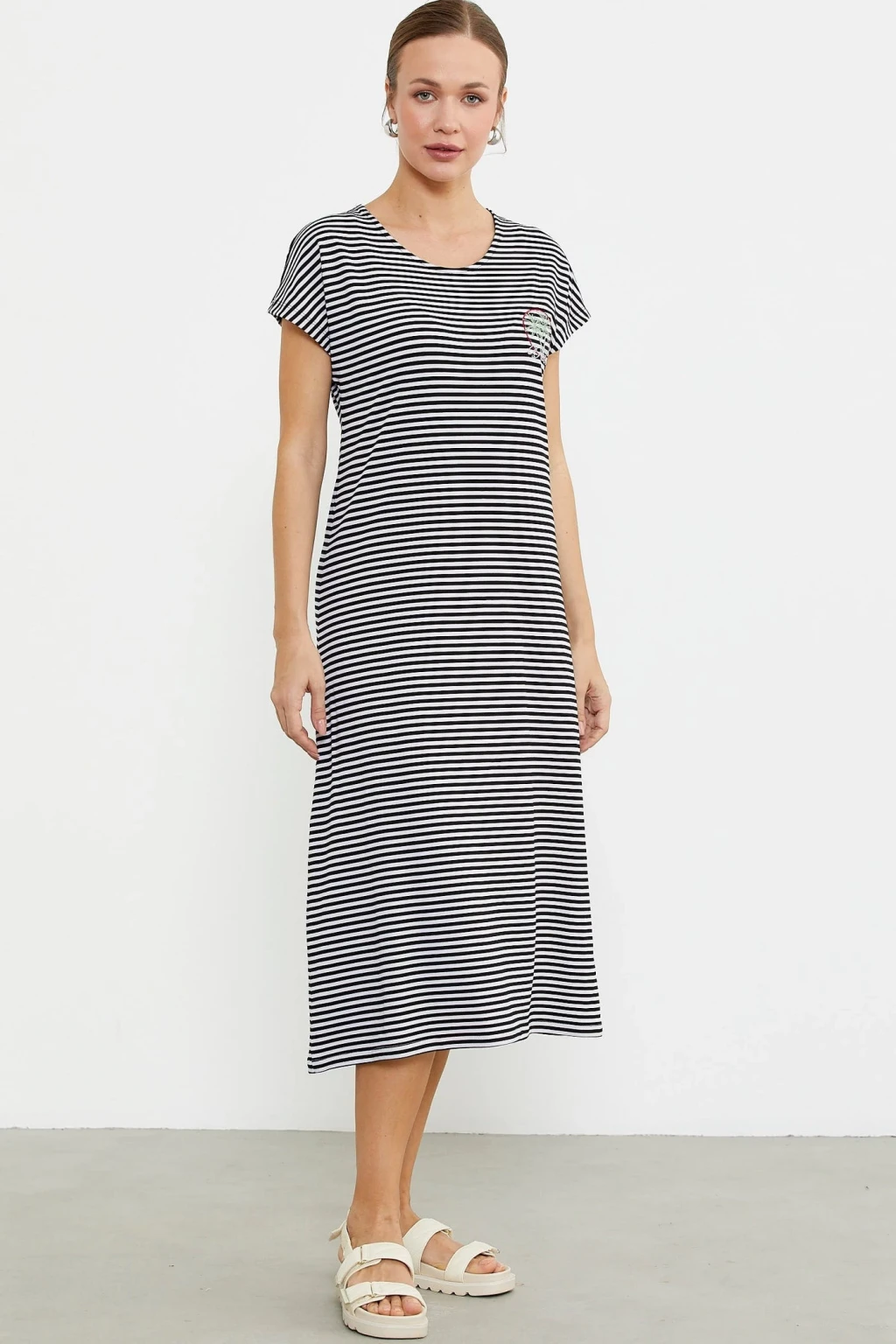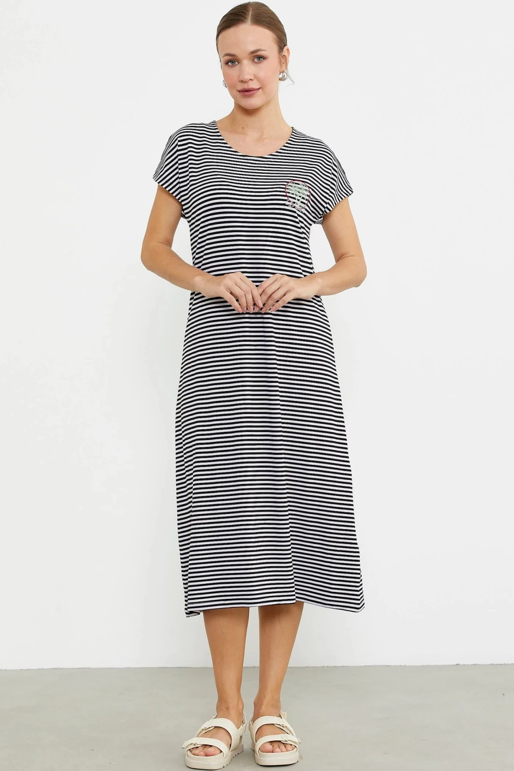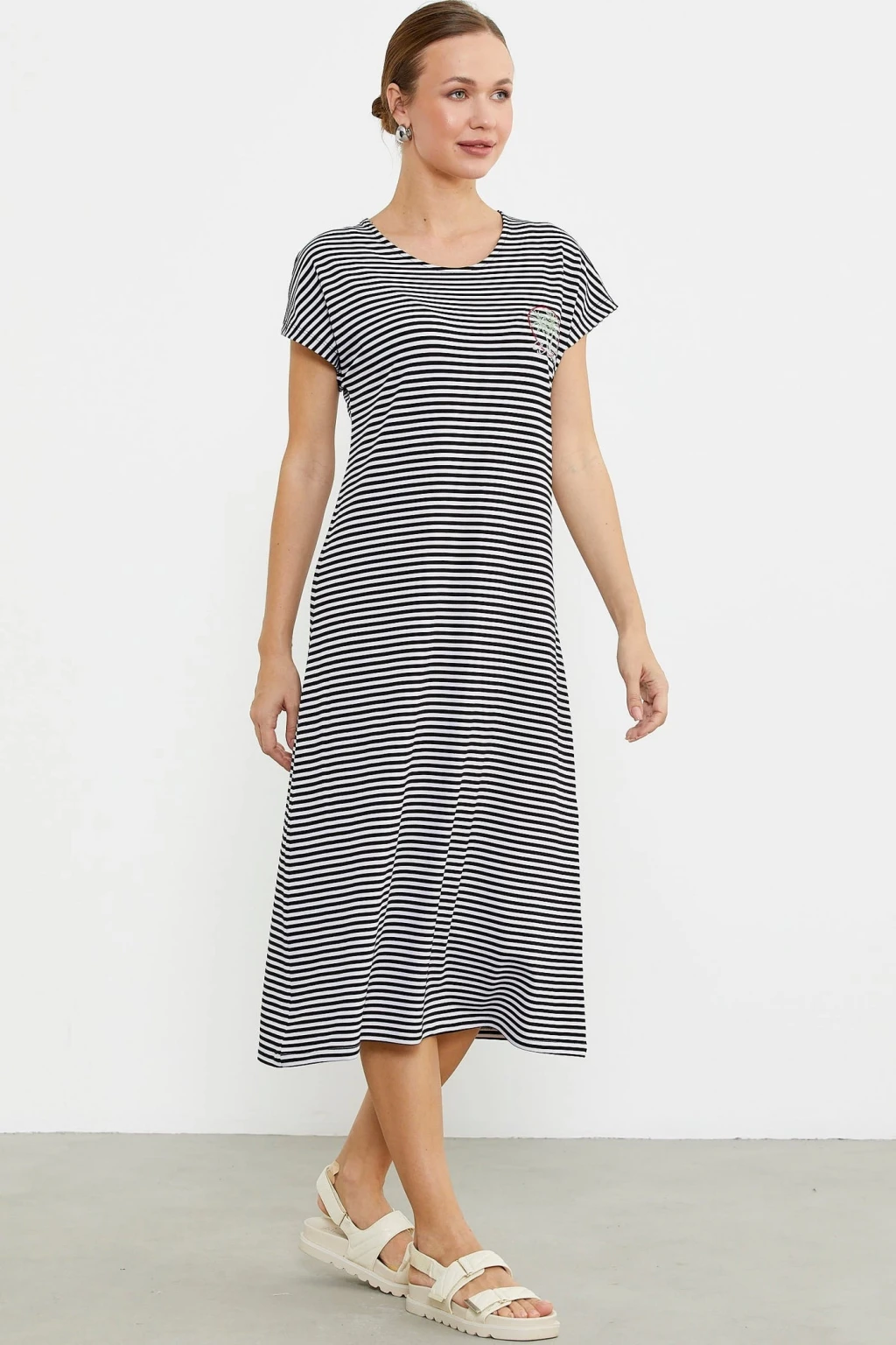 Sementa 77489 Nakış Detaylı Marine Penye Elbise