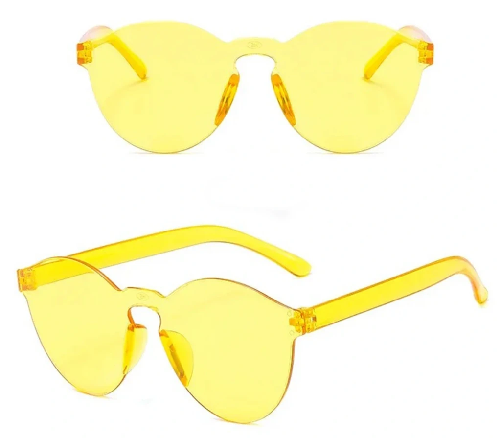 Sert Mika Oval Şekilli Çerçevesiz Sarı Gözlük Retro Parti 5x14 cm