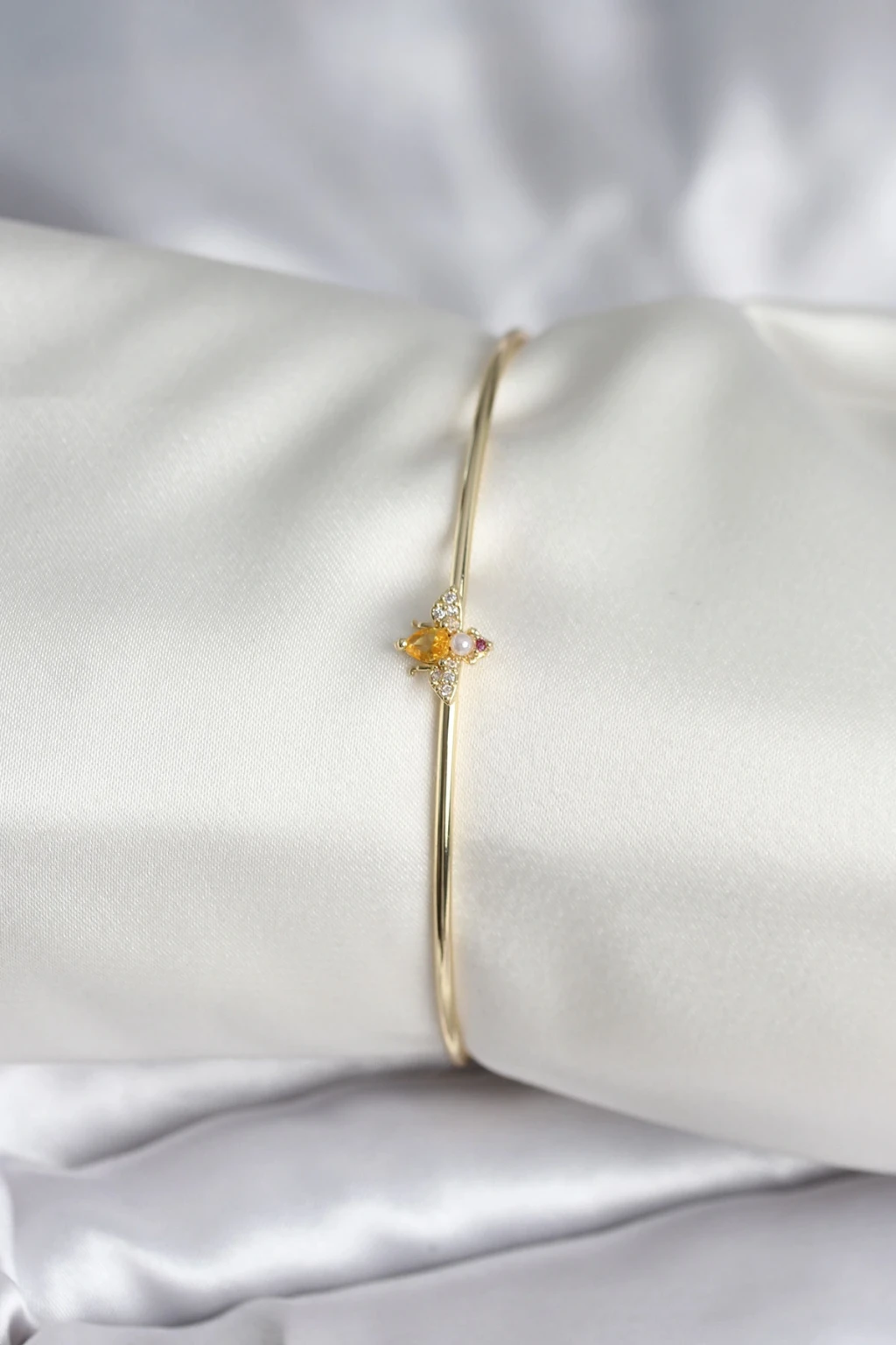 Kelebek Figürlü Zirkon Taşlı Gold Renk Pirinç Kadın Bileklik - TJ-BB8002