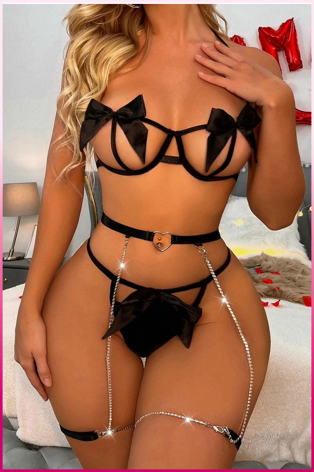 Siyah Göğüs Fiyonklu Balenli Seksi Jartiyer Takım