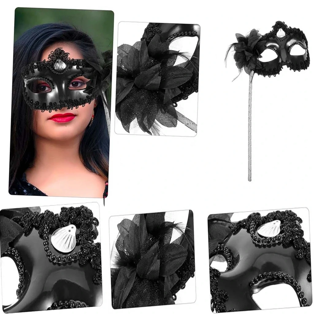 Siyah Işıltılı Tutmalı Fotoğraf Çekimi Maskesi 18x29 cm