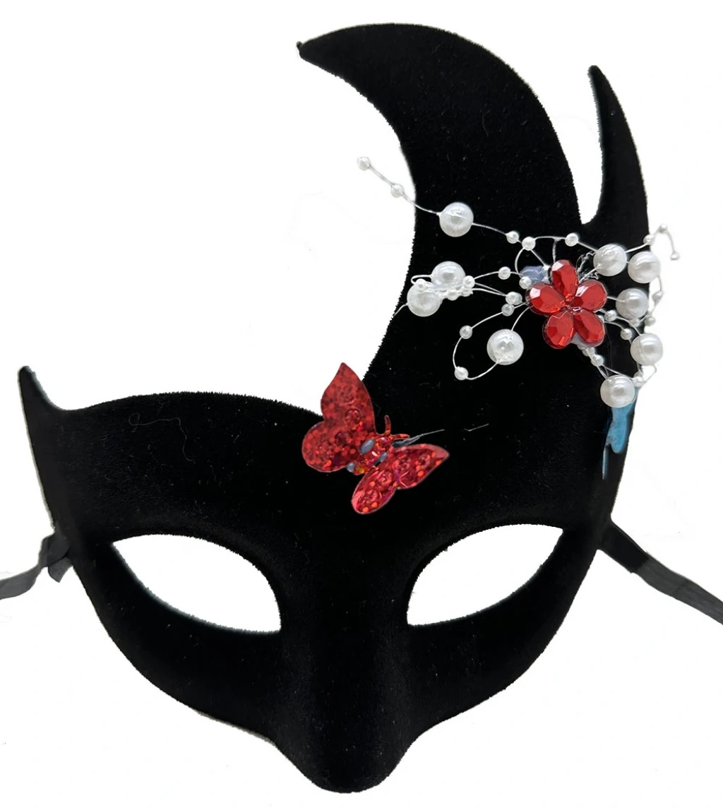 Siyah Renk İncili Taşlı Süet Kaplama Venedik Parti Maskesi ile şık ve göz alıcı bir görünüm oluşturun ve özel günlerinizi unutulmaz kılın!