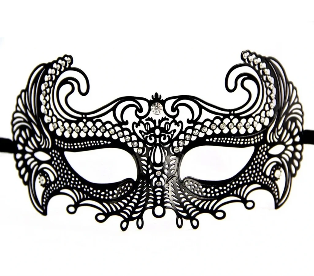 Siyah Renk Lazer Kesim Üzeri Kristal Taşlı Metal Balo Parti Venedik Maskesi