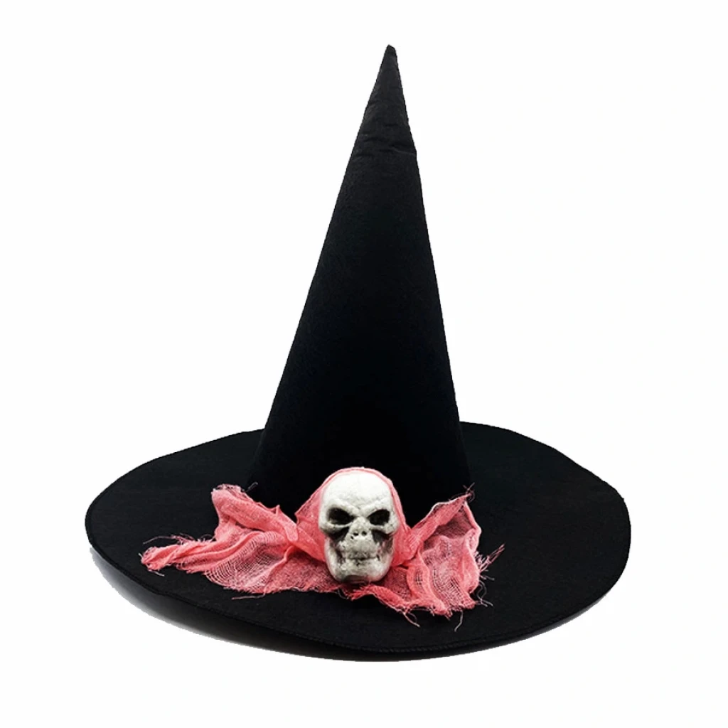 Siyah Renk Kuru Kafa Görselli Cadı Şapkası
