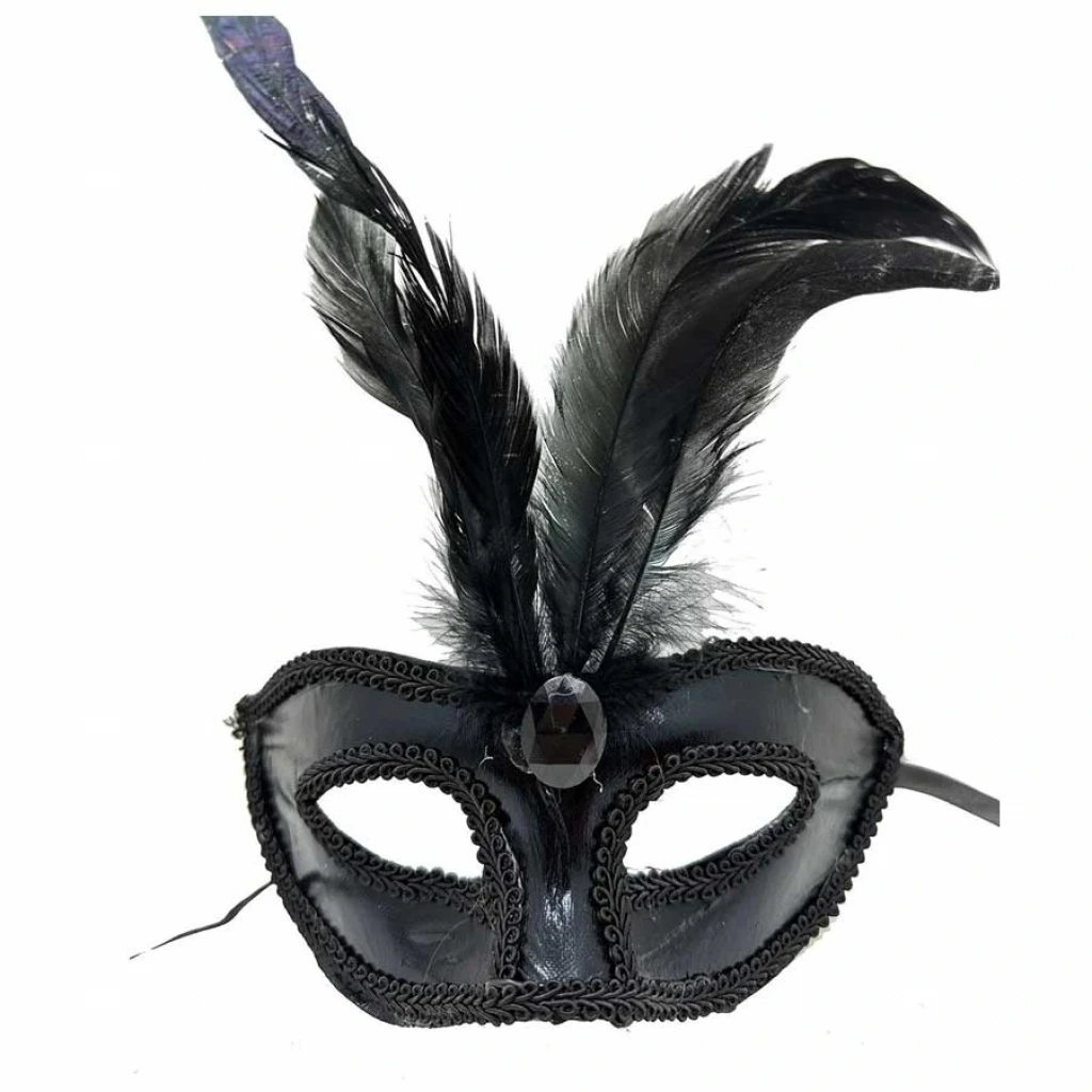 Siyah Rugan Kaplama Siyah Tüylü Parti Maskesi ile Şık ve Göz Alıcı Bir Görünüm Oluşturun!
