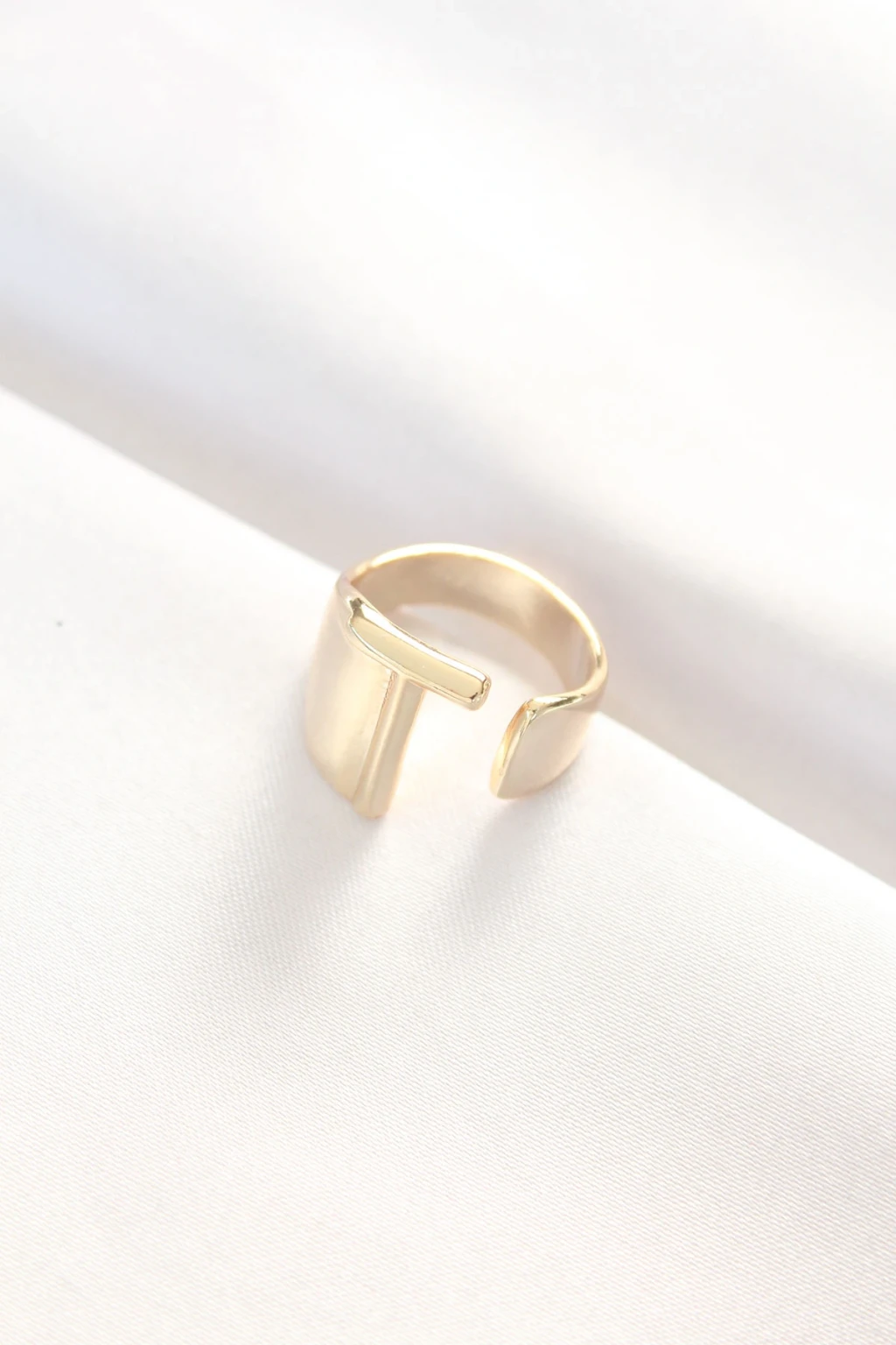 T Harfli Altın Renk Ayarlanabilir Yüzük - TJ-BYK3158