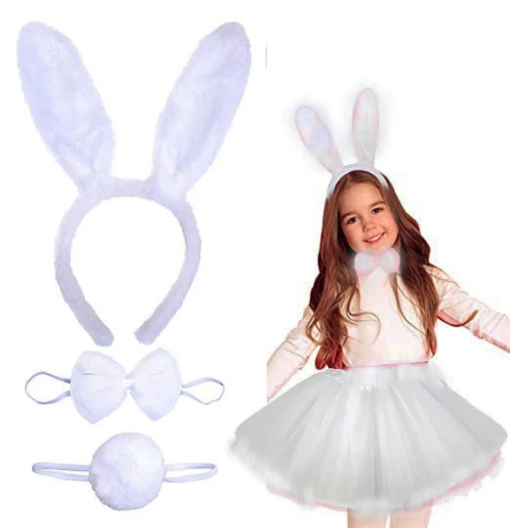 Tavşan Tacı Eteği Papyonu ve Kuyruk Kostüm Seti Beyaz Renk Çocuk Boy