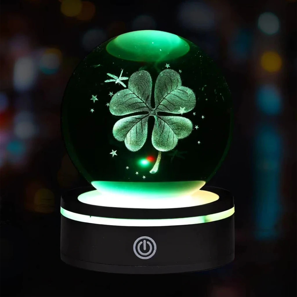 Ahşap Altlıklı Işıklı Yonca Tasarımlı Cam Küre