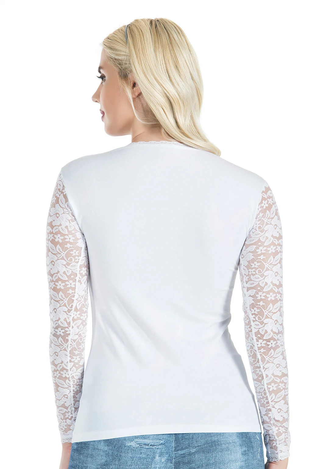 Yaka ve kol kısımlarından dantelli yeni sezon kadın tişört modelidir.