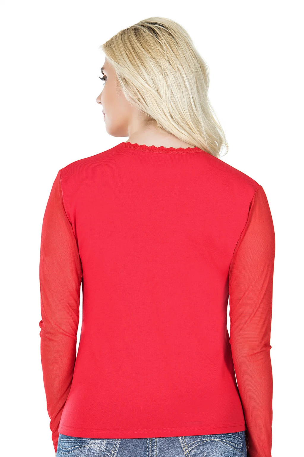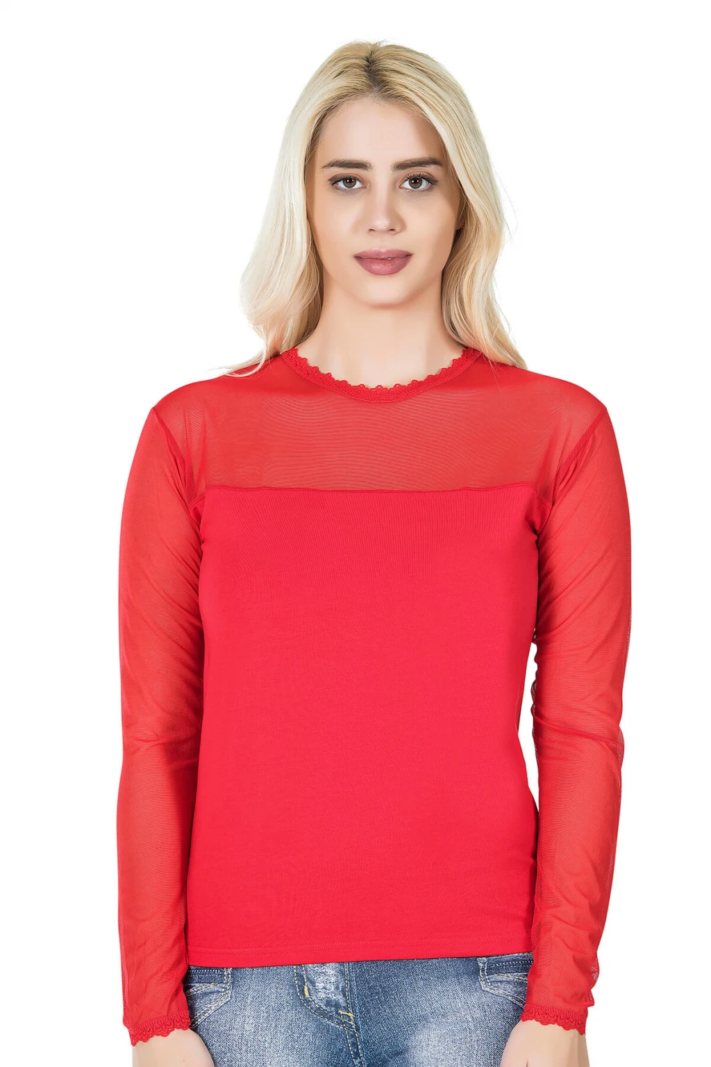 Uzun Kol Transparan Yaka Kadın Tişört 293