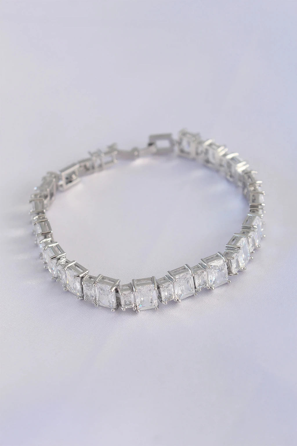 Vip Seri Pirinç Zirkon Taşlı Gümüş Renk Baget Su Yolu Model Bileklik - TJ-BB6066