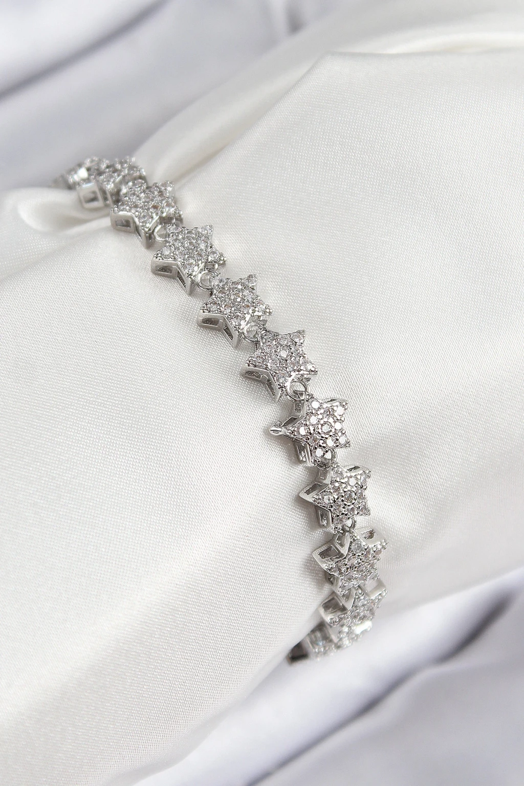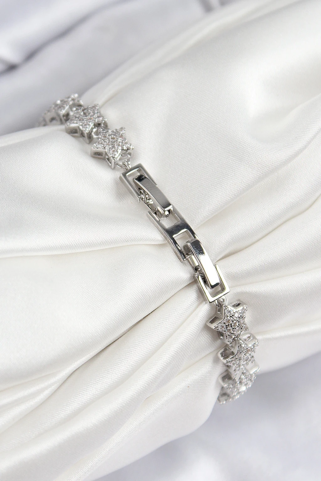 VIP Seri Pirinç Zirkon Taşlı Sıralı Yıldız Model Gümüş Renk Kadın Bileklik - TJ-BB7696