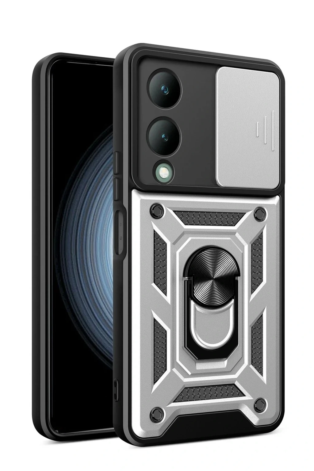 Vivo Y17S Kılıf Pars Lens Yüzüklü Silikon - Gümüş