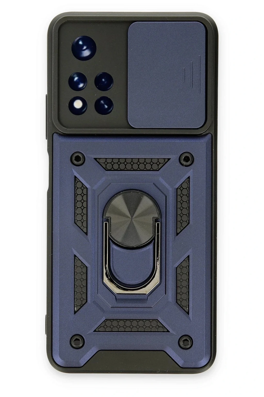 Xiaomi Poco M4 Pro 5G Kılıf Pars Lens Yüzüklü Silikon - Lacivert