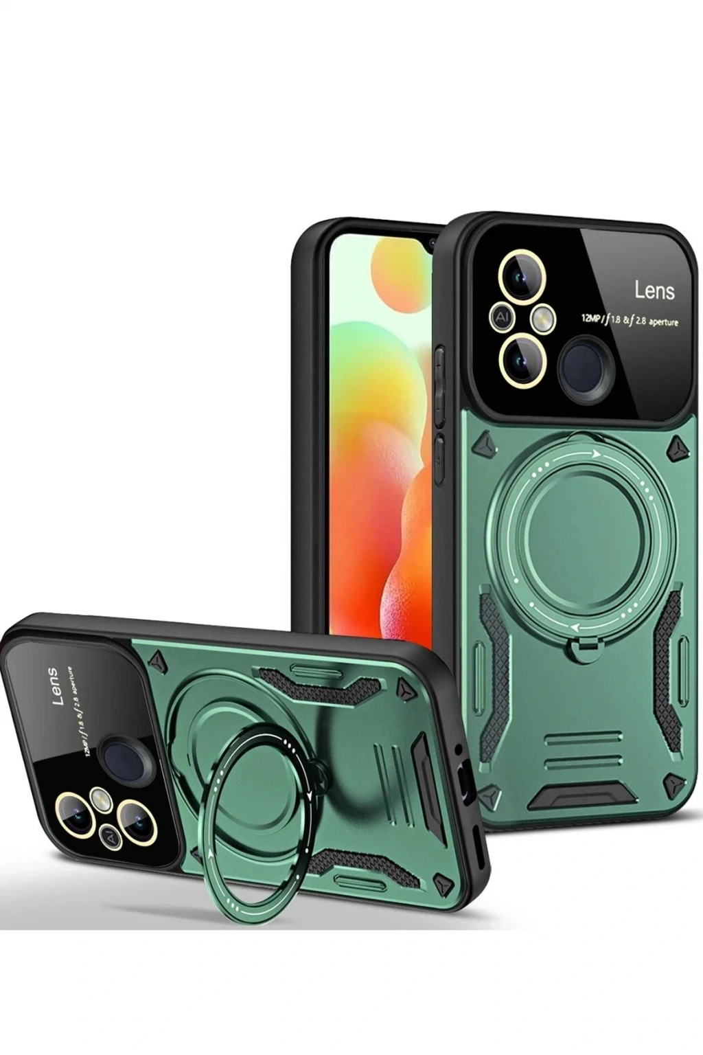 Xiaomi Redmi 12C Kılıf Joy Lens Standlı Kapak - Koyu Yeşil