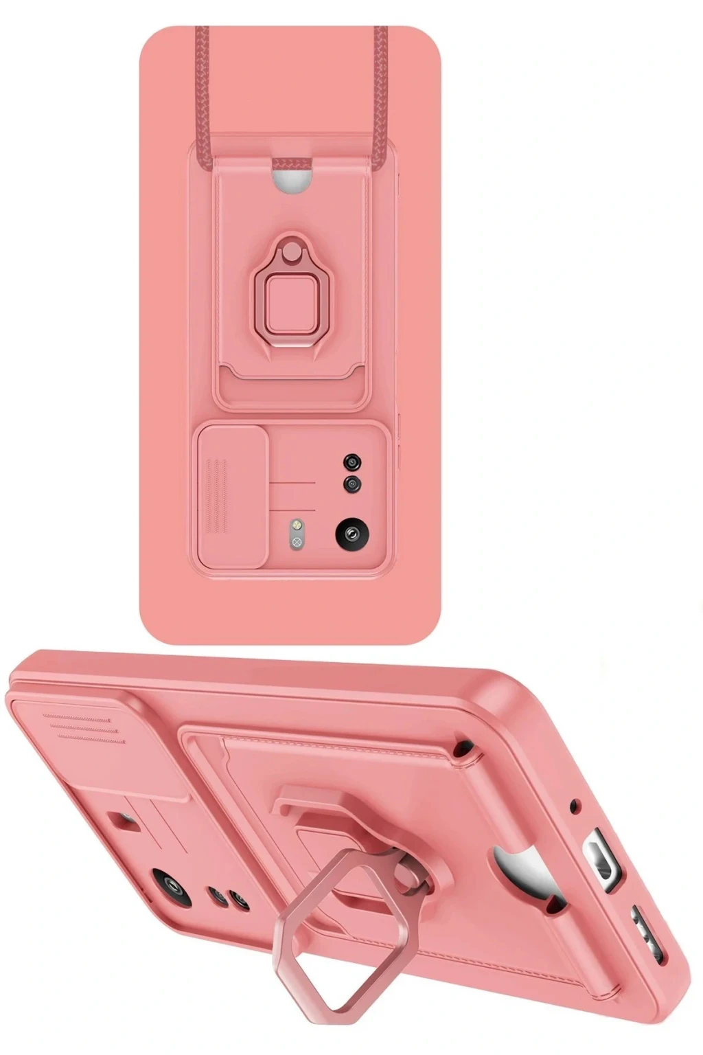 Xiaomi Redmi 13C Kılıf Zuma Kartvizitli Yüzüklü Silikon - Pembe