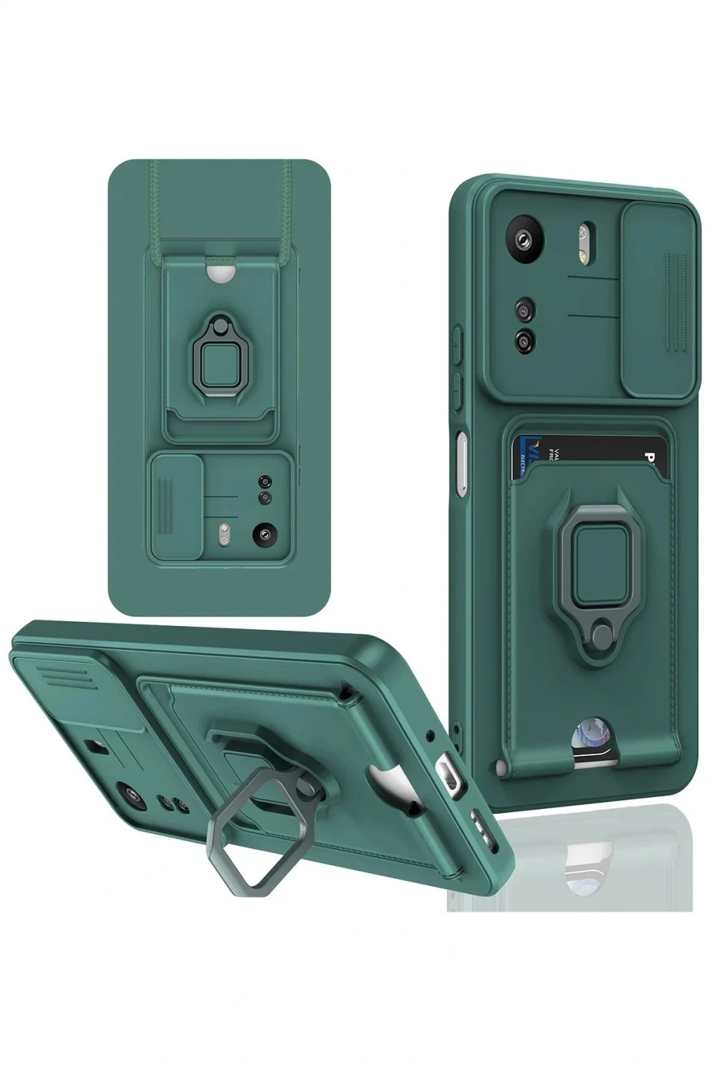 Xiaomi Redmi 13C Kılıf Zuma Kartvizitli Yüzüklü Silikon - Yeşil