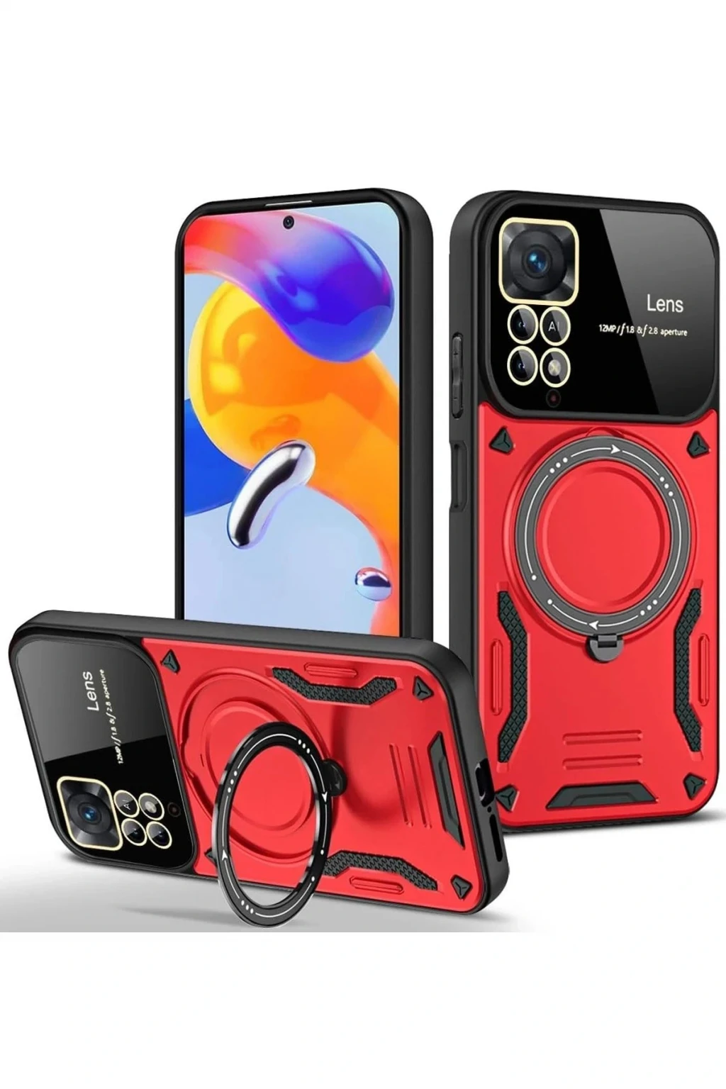 Xiaomi Redmi Note 11 Pro Kılıf Joy Lens Standlı Kapak - Kırmızı