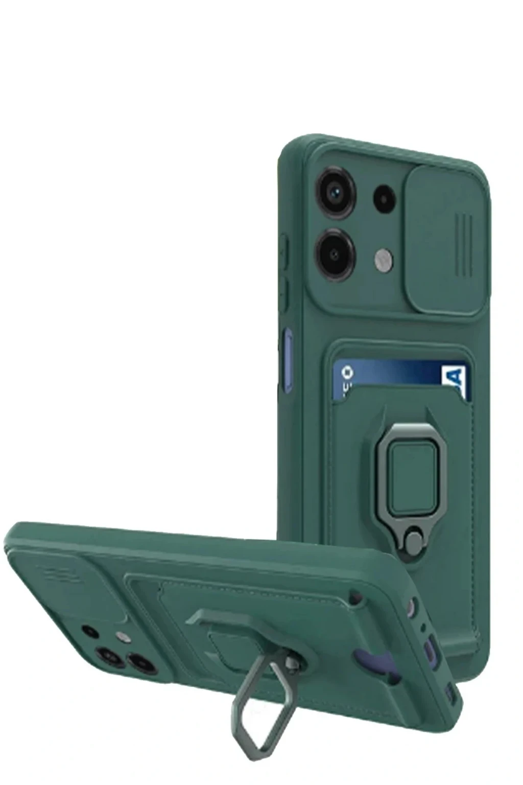 Xiaomi Redmi Note 13 4G Kılıf Zuma Kartvizitli Yüzüklü Silikon - Yeşil