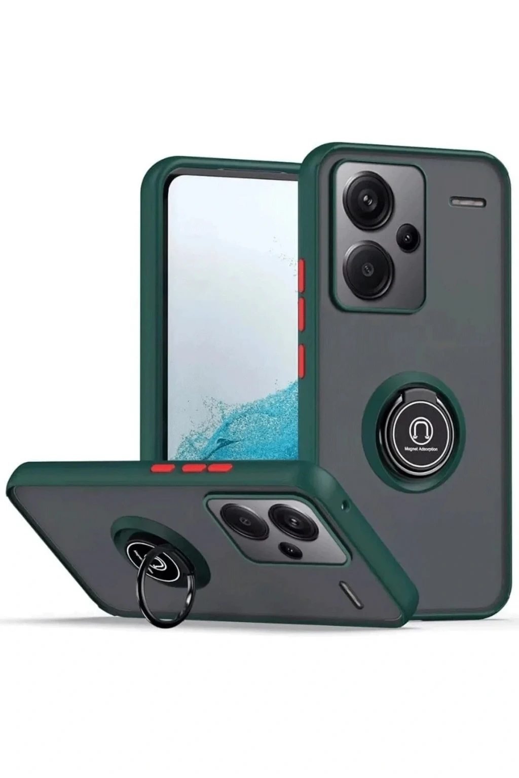 Xiaomi Redmi Note 13 Pro Plus Kılıf Montreal Yüzüklü Silikon Kapak - Yeşil