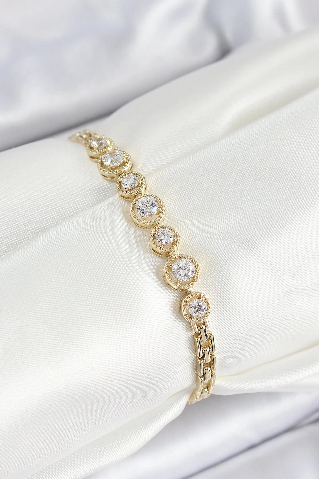 Xuping Pirinç Sıralı Daire Baget Model Gold Renk Kadın Bileklik - TJ-BB7484