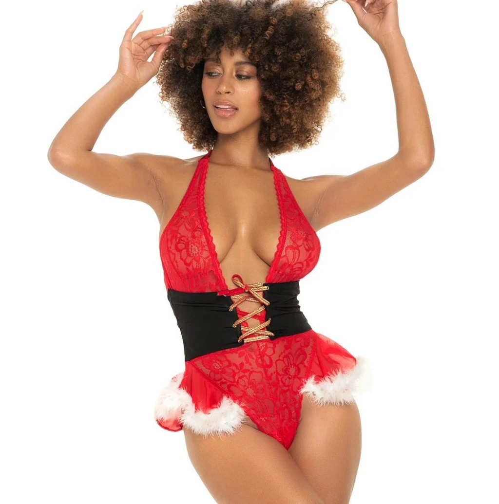 Yılbaşı Özel Kırmızı Dantel Detaylı Fantezi Kostüm