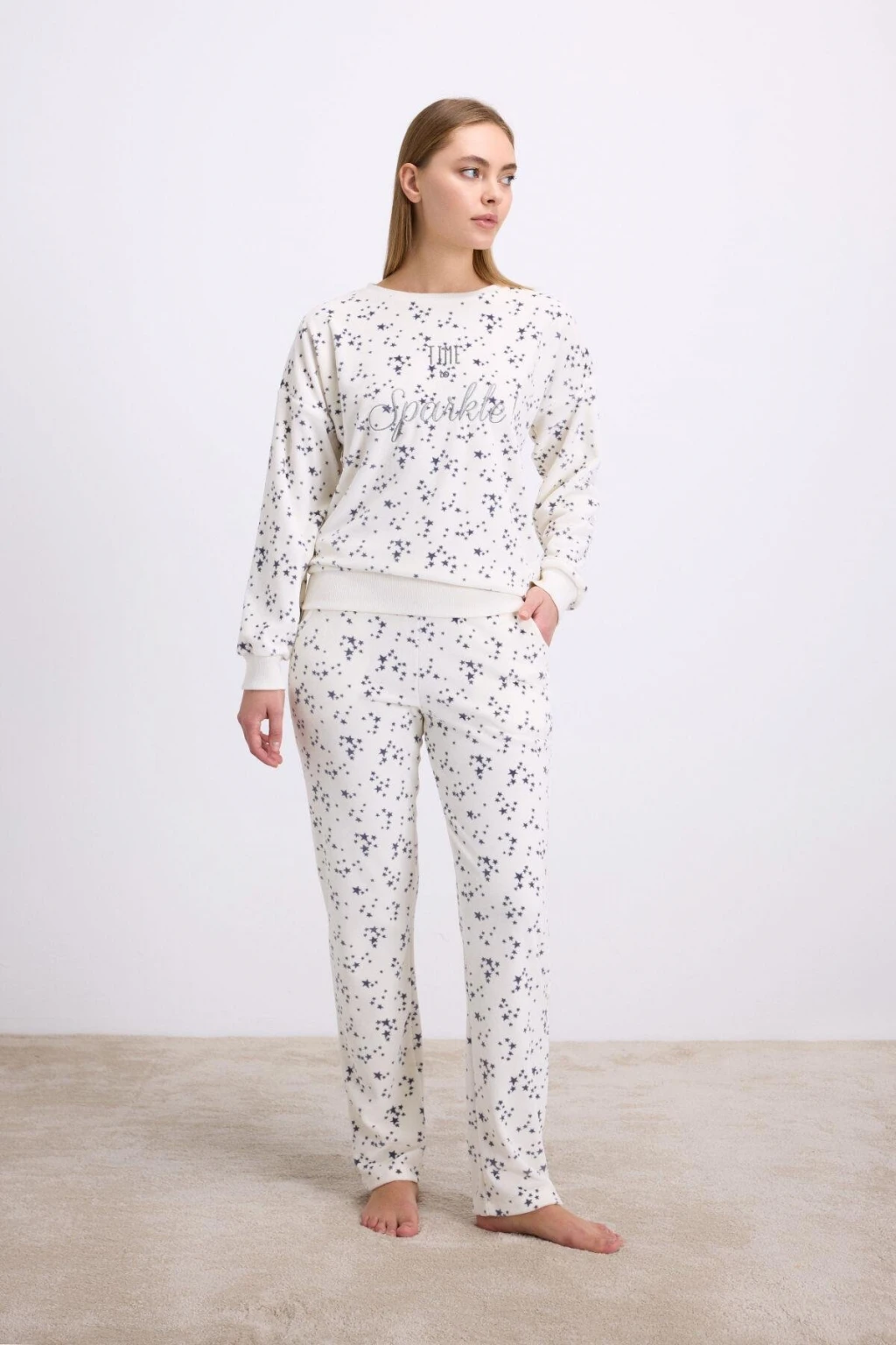 Boyraz 0348 Kadın Süet Patlı Uzun Kol Pijama Takımı
