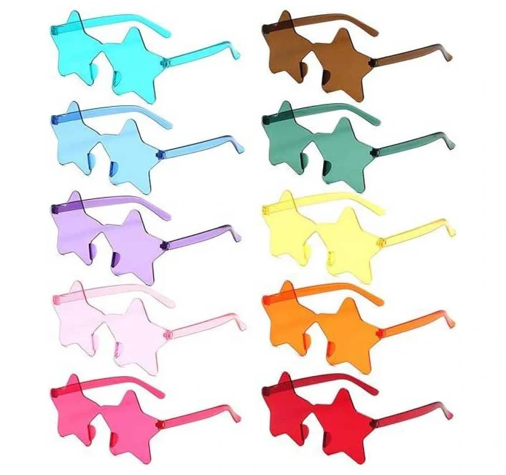 Yıldız Şekilli Çerçevesiz Parti Gözlüğü 6 Renk 6 AdetKaliteli Plastik Malzemeden ÜretilmiştirHem Yetişkinlere Hem Çocuklara Uyumludur
