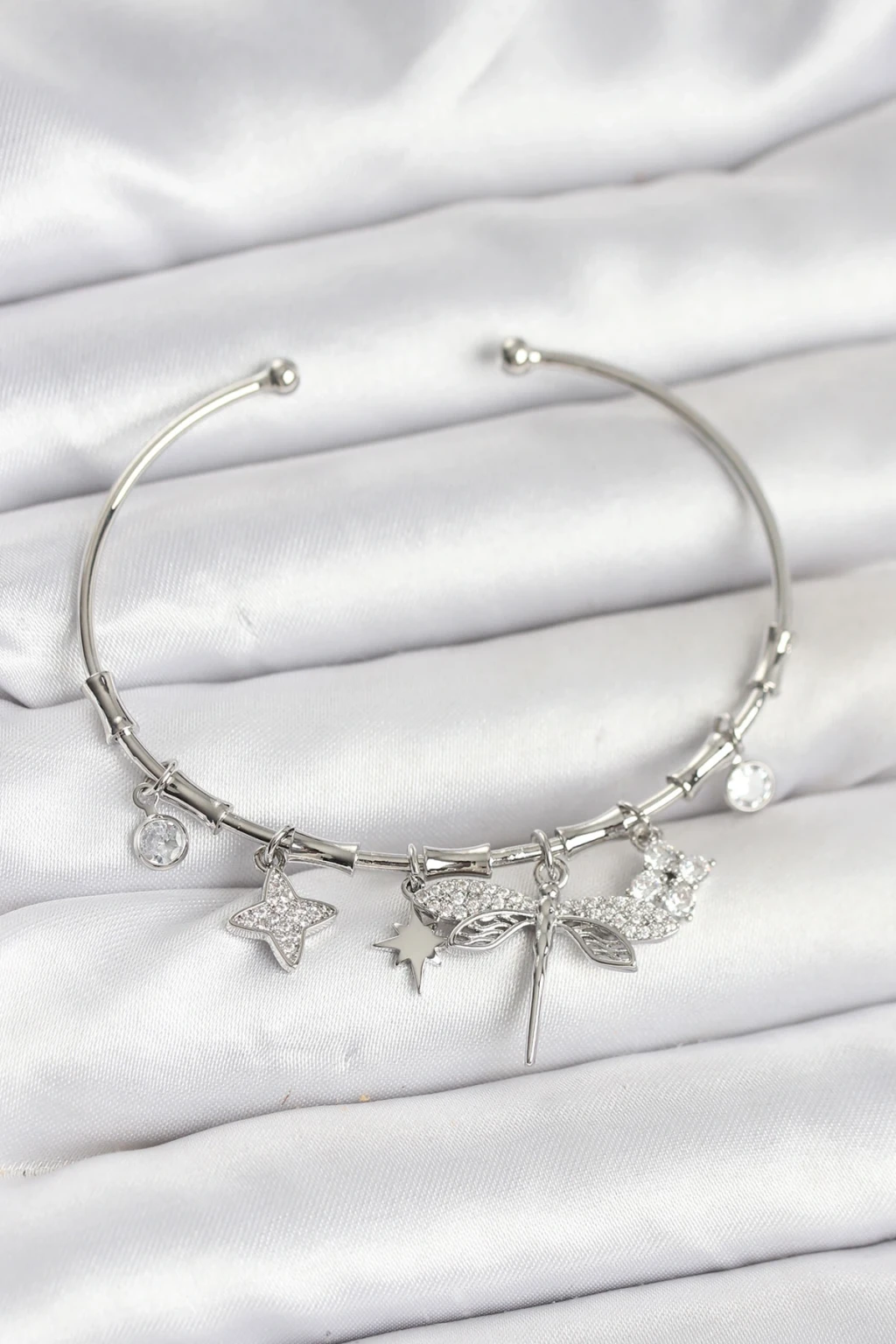 Yusufçuk Charmlı Gümüş Renk Pirinç Kadın Bileklik - TJ-BB8046